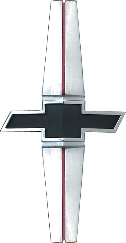 Reproduction of the OE front grille emblem finished with a satin brushed chrome finish, correct red vertical trim line and black center Bow Tie. This is a great item for your current restoration, or a nice piece to freshen the front of your car! This is for 1968 Camaro Base and Z/28 models.