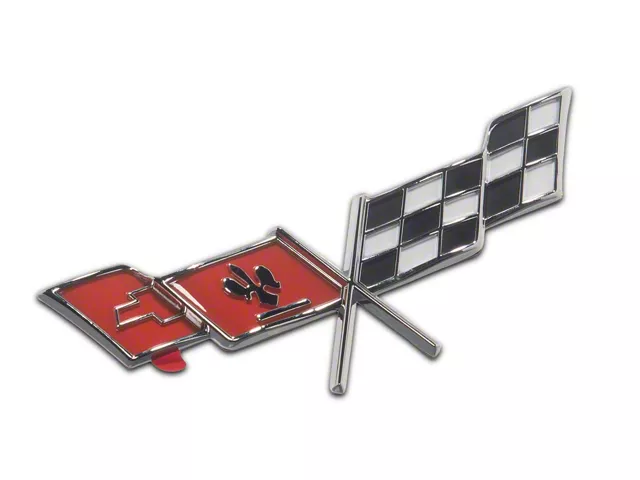 Construction and Appearance. Featuring the unmistakable Crossed Flags logo, this emblem is designed with attention to detail and factory-correct styling. Its clean finish and precision contours ensure it closely matches the original part, helping maintain your Corvette’s period-correct look while standing up to daily exposure and weathering.