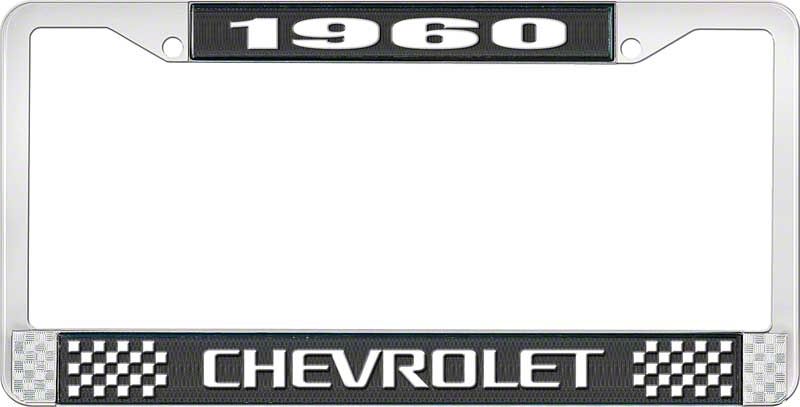 1960 Chevrolet Style #3 Black and Chrome License Plate Frame with White Lettering