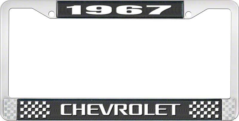 1967 Chevrolet Style #3 Black and Chrome License Plate Frame with White Lettering