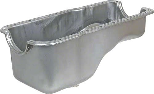 Includes pan plug & nylon gasket, the drain plug is on the side of the pan like the 1965 design, plain steel pan.