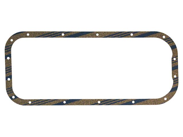 This oil pan gasket features modern cork/rubber material which is an improvement over the original cork-only design. It will maintain its shape and elasticity better than the original, and will help keep that restored engine compartment leak-free. It will work with many type of sealers but RTV seems to offer the best results.