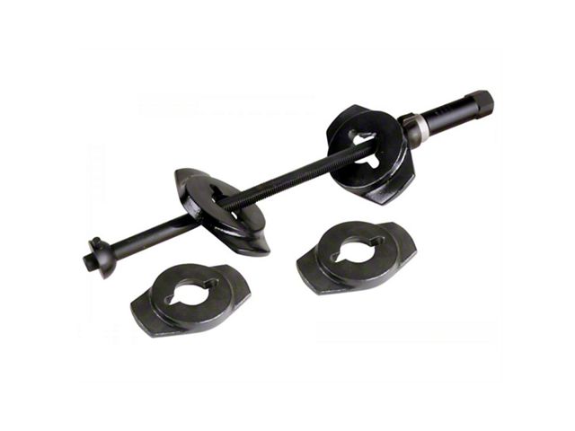 This compressor fits most late-model rear wheel drive domestic vehicles in which the coil springs are between the upper and lower control arms. The tool features four case-hardened self-aligning plates to ensure correct load distribution under tension. Includes two 3-3/8" ID plates and two 4" ID plates. Will not work on Mercedes-Benz vehicles.