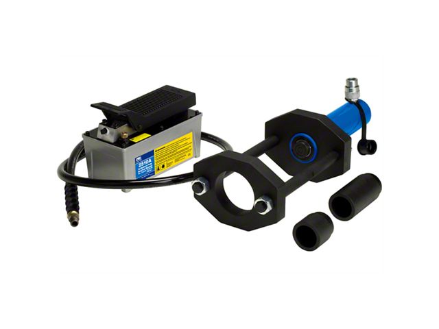 OTC's Freightliner Rear Suspension Tool features a robust 15-Ton capacity cylinder, OTC2510A air/hydraulic pump, and removal/installation adapters. Tool removes and installs single-wrapped FAS II Airliner Freightliner rear suspension bushings quickly and easily 'on vehicle' - no need to remove the spring assemblies. Using this tool allows you to complete this job in a fraction of the time that traditional methods take. Save an average of 45 minutes per bushing (4 per vehicle) on flat rate of 1.5 hours per bushing - a huge time savings. No more hammering prevents impact damage to suspension components while dramatically reducing the effort required by the technician performing the work. Value is at the core of the OTC tool and equipment portfolio. For a simple repair or the most complex drivability concern, these award-winning tools universally solve problems faster, and at better value, than any other product line available. Whether it�s a specialty tool or unique piece of service equipment, OTC provides top solutions to modern automotive service challenges while increasing technicians� productivity and shop profits.