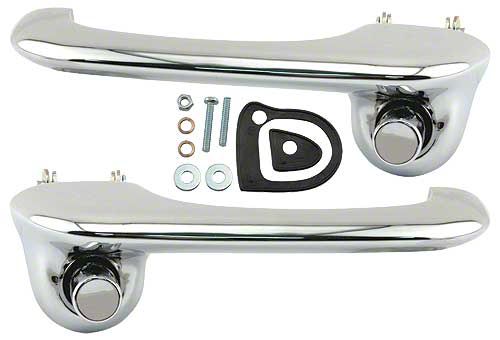 These die-cast chrome plated door handles are complete with buttons, pins, springs and pads.