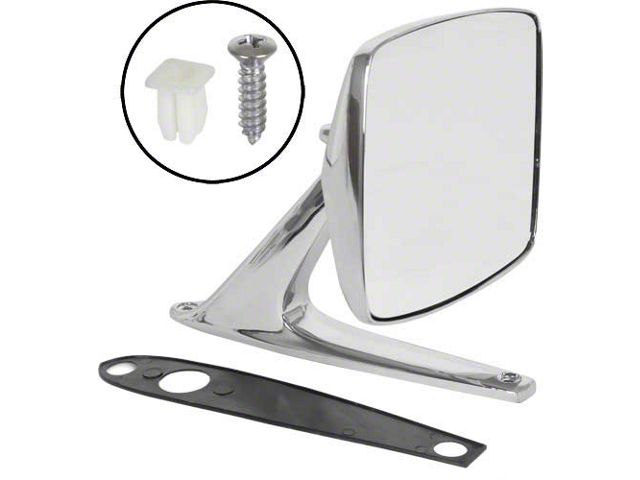 This mirror is an exact reproduction, not just another close copy! High quality pressure die cast zinc with our long-lasting chrome plating ensures a part that will give years of service. Also available with convex glass for improved viewing. Mounting hardware and pad included. Includes 2 different thickness base gaskets & mounting screws. For all of your classic Ford restoration needs, you can always count on MAC's.