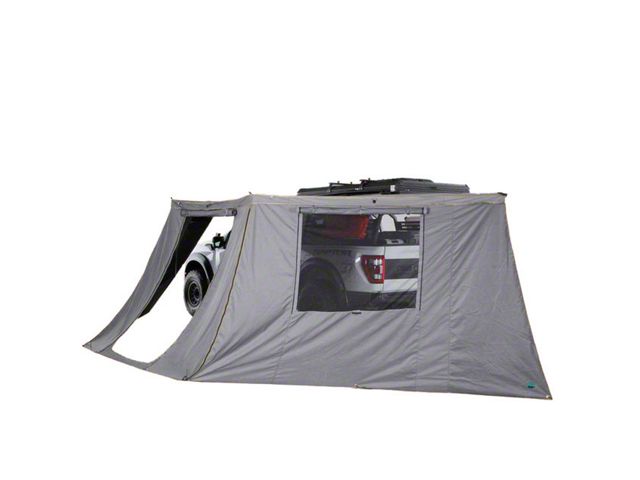 Overland Vehicle Systems Nomadic 180 Awning Wall. The Overland Vehicle Systems Nomadic 180 Awning Wall provides comprehensive 180-degree coverage for your outdoor adventures. Designed with a door and windows, it offers protection against wind, rain, and sun, making it an essential accessory for overlanders.