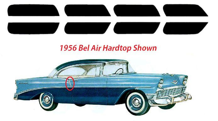The factory processes were limited by technology in the mid-50s. Paint was the best option they had for the recesses in the Bel Air and Nomad paint dividers. They looked great when new, but quickly faded and flaked off with normal use. For restorers it is difficult to get a clean consistent finish in these areas, and their efforts frequently don't hold up over time. Eckler's has a great solution with these Mylar self-adhesive inserts. They are inexpensive, easy to install, and hold up great. We also have something the factory didn't - assorted colors. Simply clean the area with a non-oily solvent and paste them in. That's it! Order several sets in different colors if you want to change the look of your car from time-to-time. You can count on us for whatever you need for your Tri-