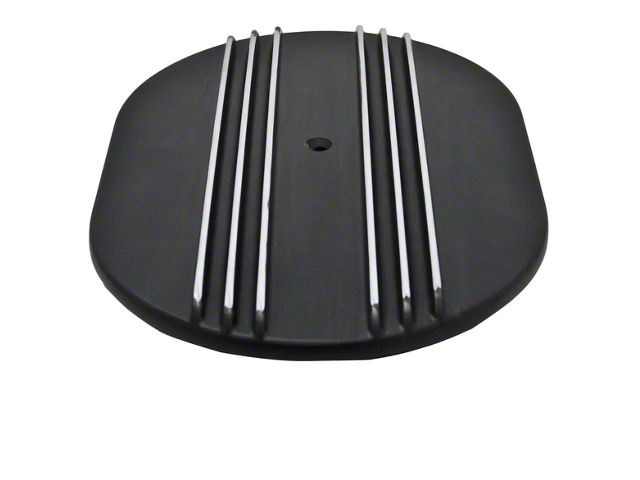 Dress up your classic Ford's engine with this beautiful retro-style partial-finned aluminum 12 inch oval air cleaner from MAC's! It features a black powder-coated, partially-finned top with polished fin edges for a clean, custom look. This air cleaner will fit most stock and aftermarket carburetors with a 5-1/8" diameter neck like most Carter, Edelbrock, Holley, Rochester, and Quadrajet four barrel carburetors. It also has a raised aluminum base to position the air cleaner above the carburetor flange. Each air cleaner comes with a stainless bolt for mounting. Count on MAC's for all of your classic Ford needs.