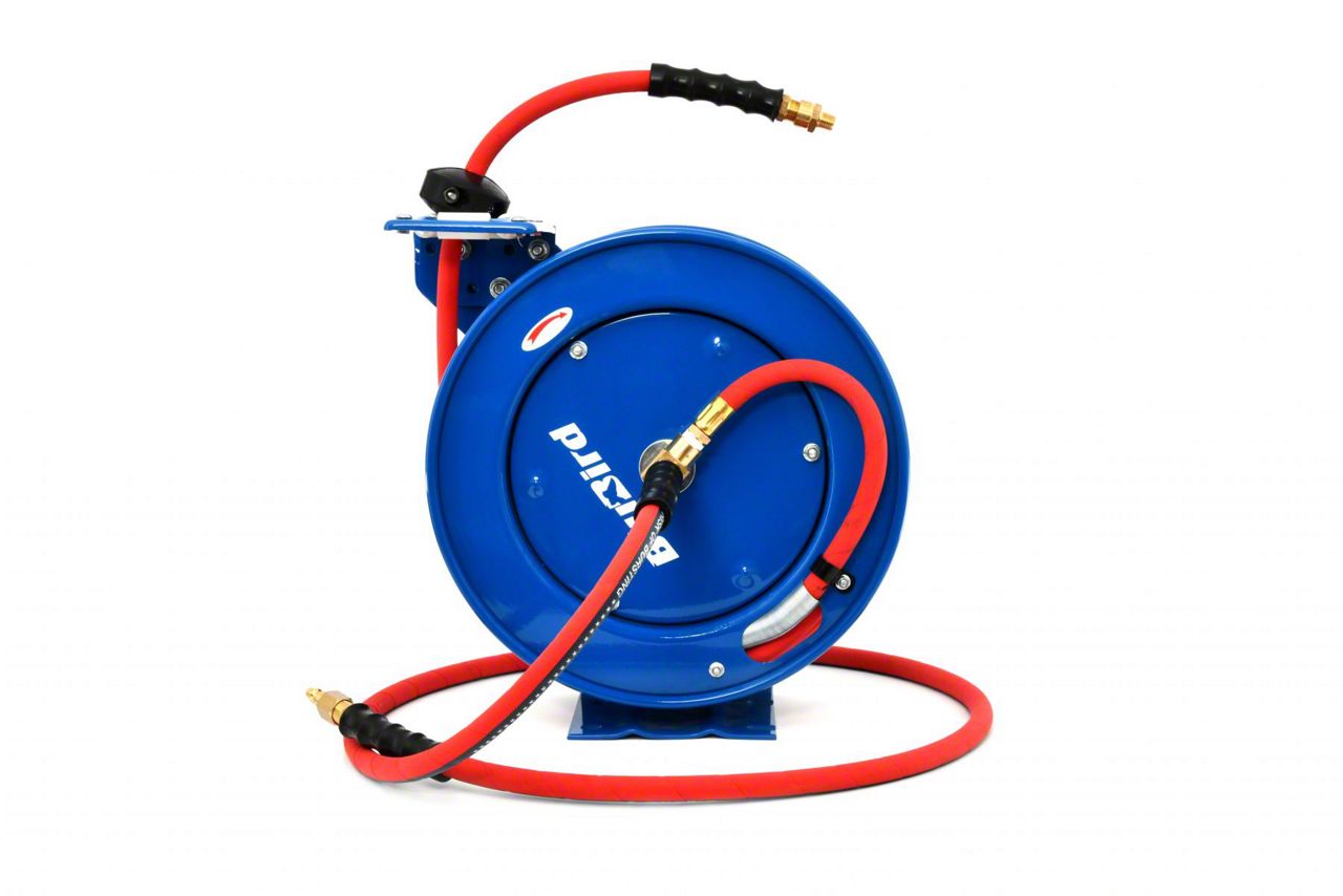 Introducing the BluBird 3/8" X 50' Patriot Pro Rubber Air Hose Reel (PPRHD3850), a premium air hose reel meticulously designed to deliver superior performance in supplying compressed air to pneumatic tools and inflation devices. This high-caliber hose reel comes with an exceptional 3-year warranty, ensuring its longevity, flexibility, and optimal performance. Manufactured from abrasion, weather, and ozone-resistant EPDM rubber, the BluBird Patriot Pro exceeds RMA 4:1 safety factor standards and features Class 'C' oil resistance. Its durable construction guarantees reliability in the most demanding environments, making it a top choice for professionals. Additionally, the hose reel includes a bend-restrictor sleeve to prevent damage near the ends, thereby extending its service life and efficiency.