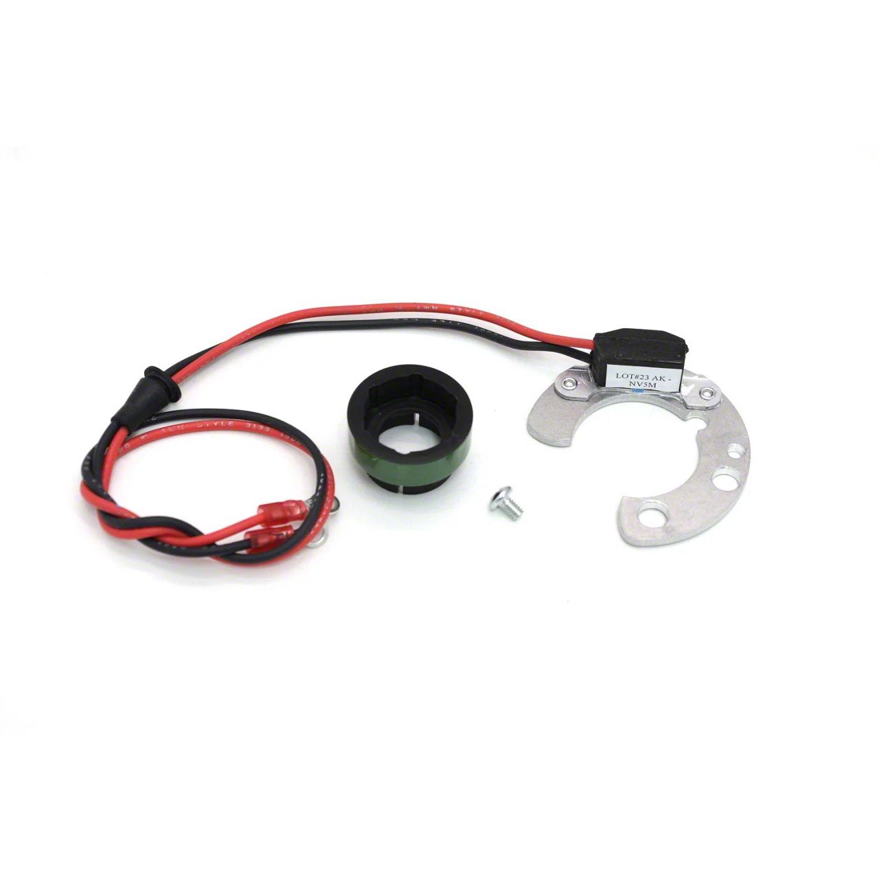 Electronic Ignition Upgrade. The 1161 Ignitor Delco 6-cylinder Electronic Ignition Conversion Kit replaces mechanical breaker points with a durable electronic module that provides more consistent, reliable ignition performance. It improves coil output and spark delivery for increased horsepower, better fuel economy, and longer spark plug life. This kit is designed to fit into the original distributor, preserving the stock appearance while eliminating the maintenance issues associated with traditional points.