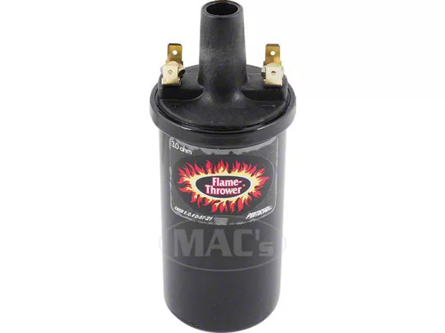 The Flame Thrower is a high-performance 40,000 volt ignition coil. It is the best coil to use with our Pertronix Ignitor breakerless points and condenser replacement.