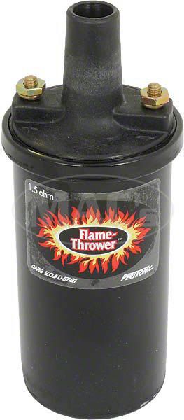 Our 40,000 volt Flame-Thrower epoxy-filled canister coil can benefit virtually any distributor type inductive system. Its higher voltage allows larger spark plug gaps for added power, smoother response and better fuel economy. It is also the perfect coil to go with the PerTronix Ignitor breakerless ignition. These coils are internally resisted so installation and wiring is drastically simplified. Oil filled coils offer great heat control for street driven vehicles, while epoxy filled coils provide superior winding support for even high vibration environments as found in off-road vehicles and boats. Selecting an epoxy-filled coil will prepare your vehicle for whatever environment you choose.