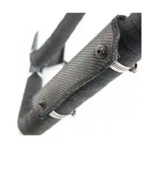 DEI now offers a better form of protection from searing exhaust heat. Thinking beyond the traditional stainless steel or carbon fiber heat shields, DEI developed a flexible heat shield solution that outperforms other shields available today. This enhanced performance starts by joining two durable materials together forming a dual-layer design. The outer layer is made from heat- treated glass fiber that is bonded with molten aluminum made into a tight weave for durability and strength. The inside material is made of a special high temperature resistant fabric (89% silica) designed to withstand some serious exhaust heat. The outer edge is finished off with a surge stitch for durabilit