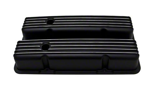 Polished Aluminum Chevy Small Block 283-400 Tall Valve Covers, Full Finned, Black (62-68 Chevy II; 69-79 Nova)