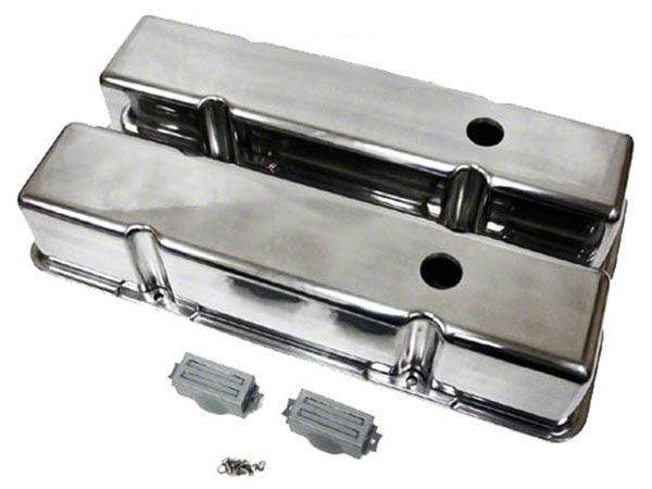 Polished Aluminum Small Block 283-400 Tall Valve Covers, Smooth (62-68 Chevy II; 69-79 Nova)