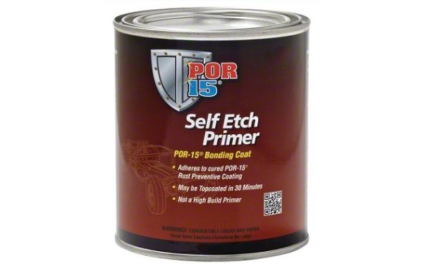 In response to many customer inquiries requesting a quick drying and easy-to-apply coating which enables a restorer to quickly topcoat POR-15® and other basecoats, this POR-15® Self-Etch Primer was developed. With this product, you can even topcoat POR-15® that's been in place for months or years. POR-15® Self-Etch Primer is NOT a high-build primer, like POR-15's High Build Primer, but it can be sprayed or brushed on almost any painted surface then can be topcoated in 15-30 minutes. It bonds incredibly well to POR-15® Rust Preventive Paint, and all topcoats bond incredibly well to POR-15® Self-Etch Primer. It can be sanded lightly, and if desired multiple coats may be applied.