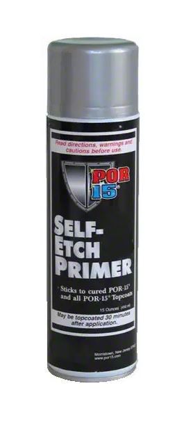 In response to many customer inquiries requesting a quick drying and easy-to-apply coating which enables a restorer to quickly topcoat POR-15® and other basecoats, this POR-15® Self-Etch Primer was developed. With this product, you can even topcoat POR-15® that's been in place for months or years. POR-15® Self-Etch Primer is NOT a high-build primer, like POR-15's High Build Primer, but it can be sprayed or brushed on almost any painted surface then can be topcoated in 15-30 minutes. It bonds incredibly well to POR-15® Rust Preventive Paint, and all topcoats bond incredibly well to POR-15® Self-Etch Primer. It can be sanded lightly, and if desired multiple coats may be applied.