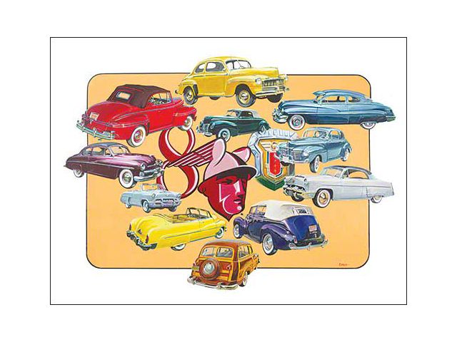 This is a full-color poster on high-gloss poster stock, suitable for framing. It depicts classic Mercurys.