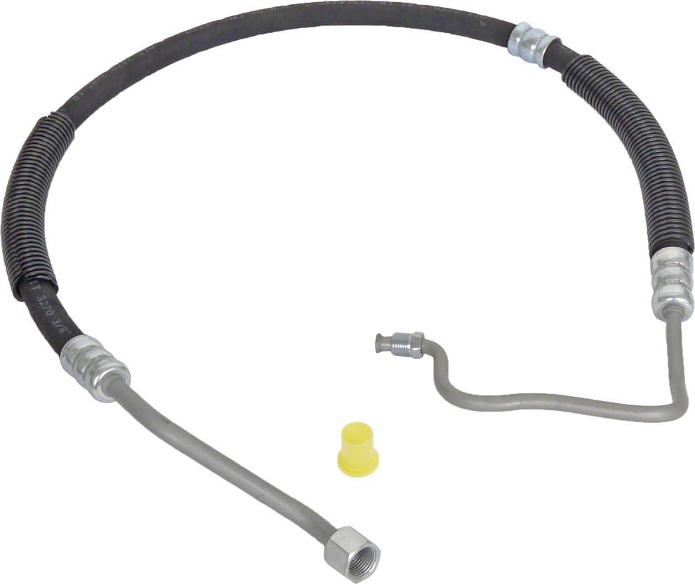 Power steering pressure line connects power steering ram to control valve. This hose comes with a 5/16 inch control valve fitting and fits 1967-1968 Ford Falcon, Ranchero and Mercury Comet equipped with the 289 and 302 v-8 engines. This hose measures 52 3/8 inches long and features a 5/16 male inverted flare on one end and a 3/8 female s.A.E on the Other.