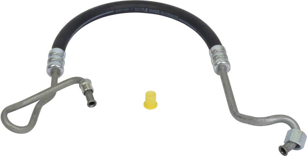 Power steering pressure line connects power steering ram to control valve. This hose fits the 1972-1976 Mercury Montego and the 1973-1977 Ford Ranchero and 1973-1976 Ford Torino's equipped with the 302/351 and 400 v-8's. Uses the Ford style gear and does not work wih the police package. This hose measures 36 1/8 inches long and has a 5/16 male inverted flare on one end and a 3/8 female s.A.E on the Other.