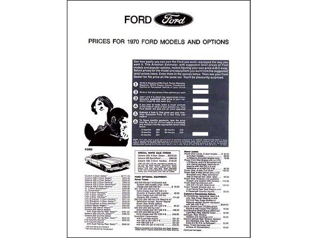 This four page booklet has the full list of options available and their prices for all the vehicles in the 1970 Ford family. Calculate what the sticker price was on your car when it was brand new!