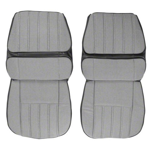 Custom seat upholstery for use with 1970 Chevrolet Camaro Coupe models. Comes with original style low back bucket seat upholstery with Black & White Checkerboard cloth with Madrid grain outer vinyl. Includes dielectrically heat-sealed inserts with vertical pleats separated by lines of stitch bars. Add a completely custom appearance to your interior with this unique aftermarket upholstery that is made specifically to install in 1970 Chevrolet Camaro models. Includes 2 front bucket seats. Fits all models with 1970 Camaro OE low back bucket seats.