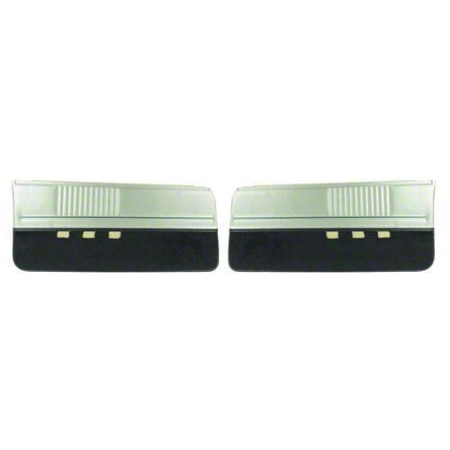 Authentic reproduction of the original interior front door panels designed for use with 1982 Camaro Z28 Indianapolis Pace Car models. Each door panel is manufactured to correct factory specifications featuring Sierra grain vinyl with a Dark Blue accent strip and lower door panel color-keyed carpet. Comes with vertical dielectric sealed stitched pleats matching the original factory design. This pre-assembled door panel includes the upper top rail and horizontal Windowfelt weatherstrip. GM built 6,360 Camaro Z28 Indianapolis Pace Car Camaro models in 1982, making this vehicle a true collectible. Sold as pairs.