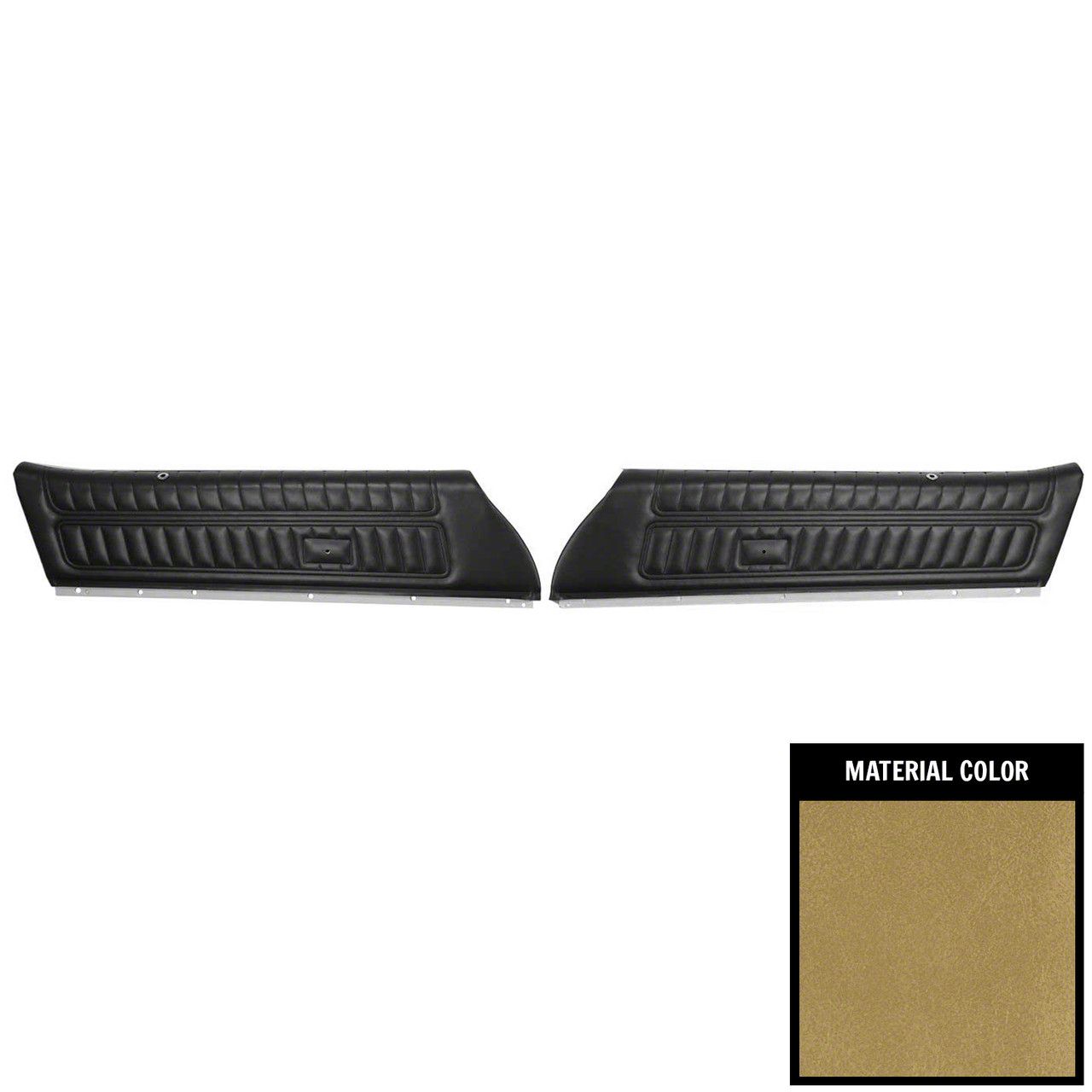 Reproduction interior front door panels for 1977 Camaro and Firebird models with Standard interior. Manufactured to factory specifications using automotive-grade 32 oz. Sierra grain vinyl featuring correct dielectrically heat sealed vertical lines. All holes needed for installing door handles, arm rests, etc. are pre-cut in the back board for easy installation. These pre-assembled door panels feature the upper metal top rails, door lock knob ferrules and horizontal Windowfelt weatherstrips. Includes driver and passenger front door panels.