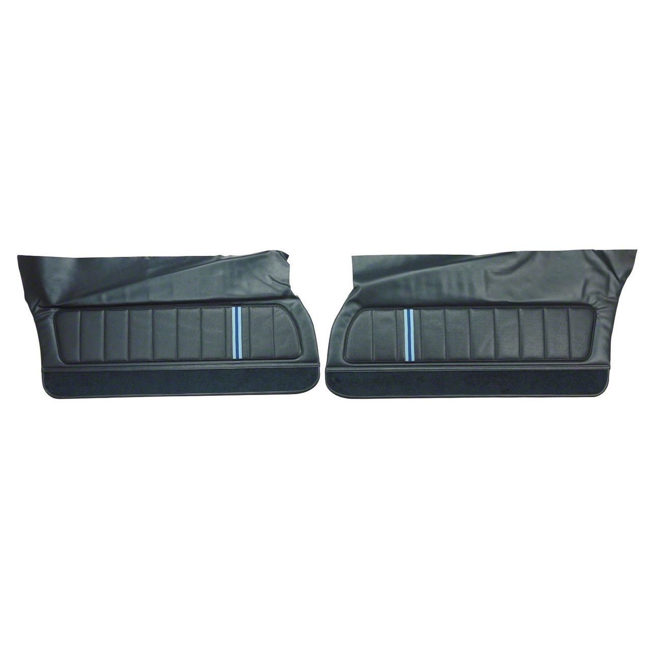 Reproduction front door panels originally installed in 1980-81 Camaro Berlinetta and RS models with Custom Vinyl interior. Each panel is manufactured to correct factory specifications featuring Sierra grain vinyl with Derma vinyl inserts that replicate the original interior door panel in appearance and fitment. Also features correct dielectrically sealed vertical 2-Tone accent stripes and carpeted bottom for authenticity. Includes driver and passenger door panels. Sold in pairs. NOTE: These door panels are not pre-assembled. They do not include the metal top rails, inner horizontal window felts or door lock knob ferrules. Refer to part number 80FDLT18-P for pre-assembled door panels.