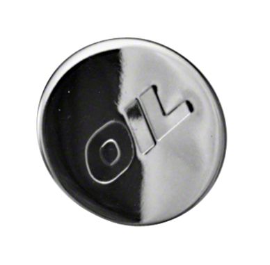 Construction and Appearance. This oil filler cap is made from premium-grade steel and features a chrome-plated finish. It is stamped with the 'OIL' logo and follows original factory specifications for a seamless integration with existing parts.