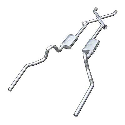 Pypes Street Pro exhaust systems are designed to boost your car's performance to the next level—you'll get more power, better mileage, and a rich, throaty tone that can't be ignored. Built to outflow and outlast factory exhausts, these systems feature mandrel-bent, 16-gauge, stainless steel pipe and precision-matched stainless steel mufflers. Don't let the looks of these mufflers fool you. Although at idle, you may cause passengers to reach for their seat belts—upon acceleration, a smooth, authoritative tone turns apprehension into a reassuring confidence. These great street/strip mufflers will maintain their rich sound qualities for life because there is no filler to burn off. They're recommended for stock to medium-modified vehicles where an aggressive sound is appreciated but not advertised. Pypes Street Pro exhaust systems include stainless steel hangers, clamps, and instructions; their slip-fit connections facilitate a fast and trouble-free installation (some cutting may be required). Order the model designed for your vehicle.