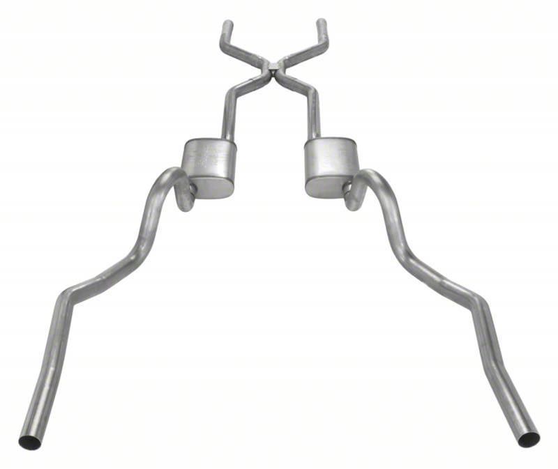 Pypes Turbo Pro Crossmember-Back Exhaust System with H-Pipe and 18-Inch Muffler; Valance Exit (70-71 GTO)