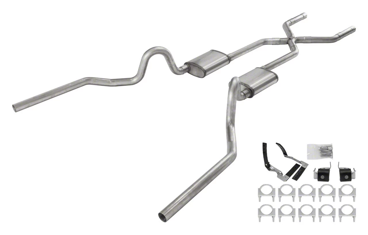 Pypes Street Pro exhaust systems are designed to boost your car's performance to the next level—you'll get more power, better mileage, and a rich, throaty tone that can't be ignored. Built to outflow and outlast factory exhausts, these systems feature mandrel-bent, 16-gauge, stainless steel pipe and precision-matched stainless steel mufflers. Don't let the looks of these mufflers fool you. Although at idle, you may cause passengers to reach for their seat belts—upon acceleration, a smooth, authoritative tone turns apprehension into a reassuring confidence. These great street/strip mufflers will maintain their rich sound qualities for life because there is no filler to burn off. They're recommended for stock to medium-modified vehicles where an aggressive sound is appreciated but not advertised. Pypes Street Pro exhaust systems include stainless steel hangers, clamps, and instructions; their slip-fit connections facilitate a fast and trouble-free installation (some cutting may be required). Order the model designed for your vehicle.