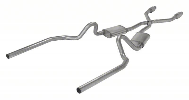 Pypes Street Pro exhaust systems are designed to boost your car's performance to the next level—you'll get more power, better mileage, and a rich, throaty tone that can't be ignored. Built to outflow and outlast factory exhausts, these systems feature mandrel-bent, 16-gauge, stainless steel pipe and precision-matched stainless steel mufflers. Don't let the looks of these mufflers fool you. Although at idle, you may cause passengers to reach for their seat belts—upon acceleration, a smooth, authoritative tone turns apprehension into a reassuring confidence. These great street/strip mufflers will maintain their rich sound qualities for life because there is no filler to burn off. They're recommended for stock to medium-modified vehicles where an aggressive sound is appreciated but not advertised. Pypes Street Pro exhaust systems include stainless steel hangers, clamps, and instructions; their slip-fit connections facilitate a fast and trouble-free installation (some cutting may be required). Order the model designed for your vehicle.