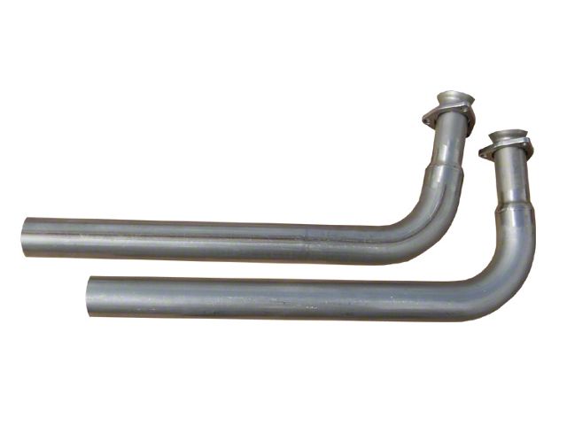 These stainless steel downpipes will bolt directly to the stock 2" outlet cast iron manifolds found on most small-block Corvettes from 1975-1979, and 350s in 1980 (305s had a different style). They have free-flowing 2.5" pipe with a 'necked down' section to connect to the manifolds. They have the 3-hole flanges included. These are intended to connect with Pypes x-pipe and dual exhaust systems.