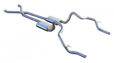 Fits 70-74 F body GM. Adding optional EVT58 or EVT59 will allow them to exit out the back straighter. For 62-67 Nova see SGN10, for 67-69 F body use SGF70 or SGF60/63. Requires TGF10E tailpipe adapter kit for 76-81 TA with splitters.