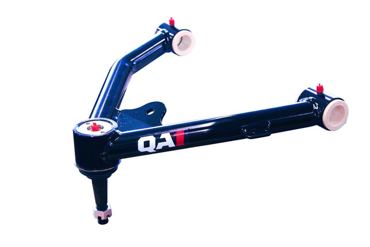 QA1 upper control arms for the C1500 platform offer both weight savings and improved handling compared to stock upper control arms. The control arms provide a gain in positive caster and taller upper ball joints for an improved camber curve. These control arms are a bolt in design to the factory upper control arm mounts and will not require cutting or modifications.