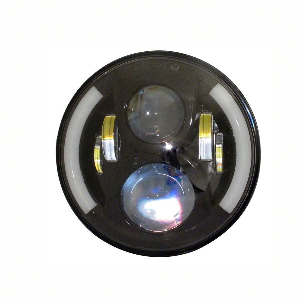 Quake LED Tempest 7-Inch Headlights with White DRL Halo and Amber Turn Signal; Black Housing; Clear Lens (70-76 Firebird)Find parts that fit my vehicle