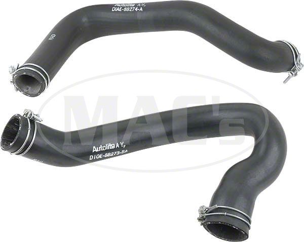 Each set consists of upper and lower radiator hose with logo and correct numbers. Also has double-wire type clamps stapled to each end - as original.