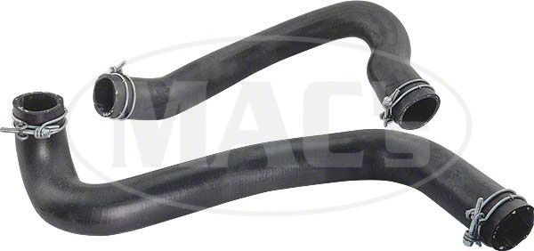 Each set consists of upper and lower radiator hose with logo and correct numbers. Also has double-wire type clamps stapled to each end - as original.
