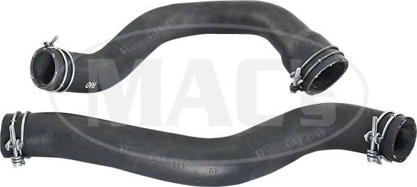 Each set consists of upper and lower radiator hose with logo and correct numbers. Also has double-wire type clamps stapled to each end - as original.
