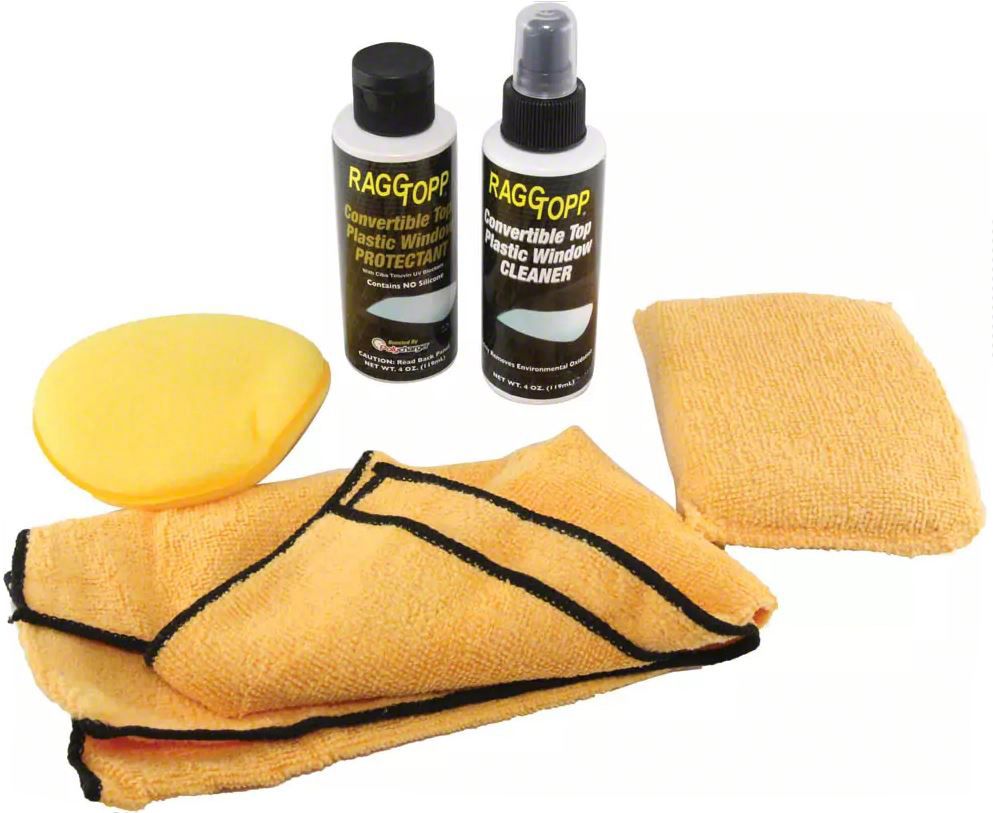 The RaggTopp Convertible Top Plastic Window Cleaner & Protectant Kit is your best defense against yellowing plastic windows. These two products maintain the clarity and like-new appearance of convertible top windows. And they?re easy to use! Boosted with Polycharger, RaggTopp Plastic Window Cleaner and Plastic Window Protectant are made to work hand in hand to keep your convertible top in pristine condition.