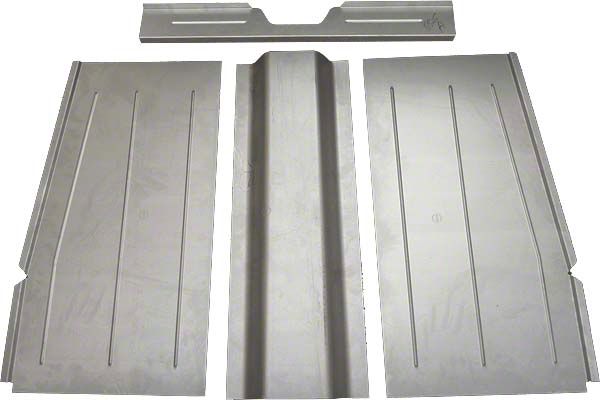 Fits all body styles of 1941-1948 Ford and Mercury cars. This rear floor pan starts approximately mid-way under the front seat and reaches rearward to the base of the rear seat. It extends the entire width of the vehicle and attaches to the rocker box sections just above the running boards. Made from 18 gauge steel right here in the USA, these floor pans are built to last! Kit includes left and right rear floor pans, drive shaft tunnel, and rear seat front base.