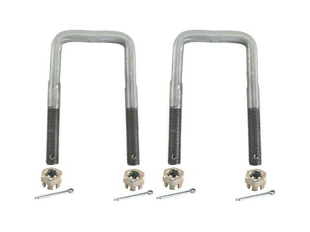 1 set does both sides. These U-bolts fit numerous applications and may be too long for some, but they can be trimmed and the cotter key hole re-drilled for a perfect fit.