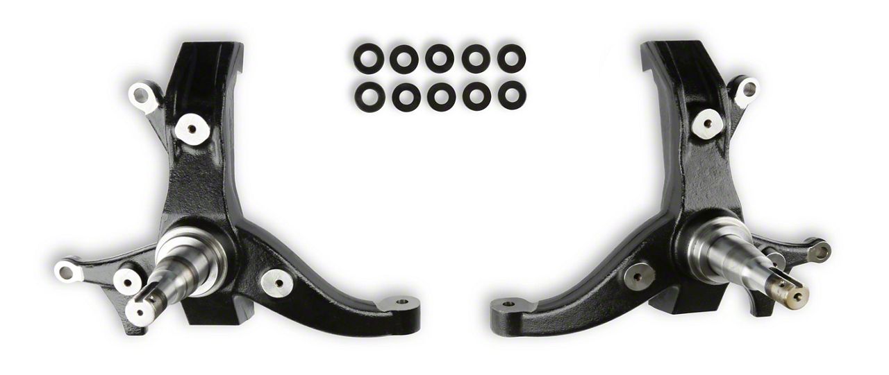 REKUDO spindles are one part of a fully engineered suspension and brake system for the 1970-1981 Chevrolet Camaro & Pontiac Firebird. This suspension system is an auto-cross inspired modern suspension system that retains the original equipment (OE) appearance & strength with taller than stock spindles for improved camber gain & lowers the front of the vehicle by 1". These spindles must be used with REKUDO Control Arms RK100-21 and REKUDO JL8 front brake system (calipers, rotors, hubs, dust shields, and brake hoses) Spindles are forged 4140 chrome-moly steel construction with Black EDP Coating. Spindles sold in pairs.