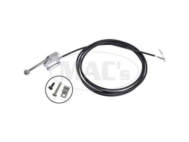 Remote trunk release for 1967-1968 cars. May require some modification to fit all applications. Comes with release lever, cable, screws and cable retaining clips.