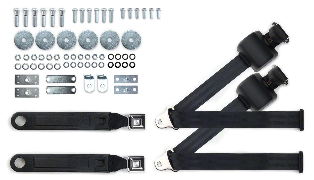 RetroBelt®'s 1964-75 two passenger lap and shoulder seat belt kits with push-button buckles are available in eight colors to match the interior of your classic 1964-72 Pontiac GTO. The 12-inch plastic sleeve makes this system perfect for installation in vehicles with bucket seats. The retractors hold 96 inches of webbing, with 39 inches of webbing outside for a total of over 11 feet of seat belt webbing. The webbing and its stitching are color-matched to the retractors. These seat belts feature classic chrome push-button buckles and chrome belt ends. Retractors have an advanced inertia design that locks during sudden stops. Our seat belts meet or exceed Federal Motor Vehicle Safety Standards. Many GM vehicles in the early to late 1960’s were not equipped with seat belts. Adding seat belts to these vehicles is an invaluable investment in your vehicle and in your family’s safety. This product may require advanced fabrication skills to install anchor points; please consult a professional installation specialist. Mounting hardware included. Price is per pair of seat belts for two passengers.