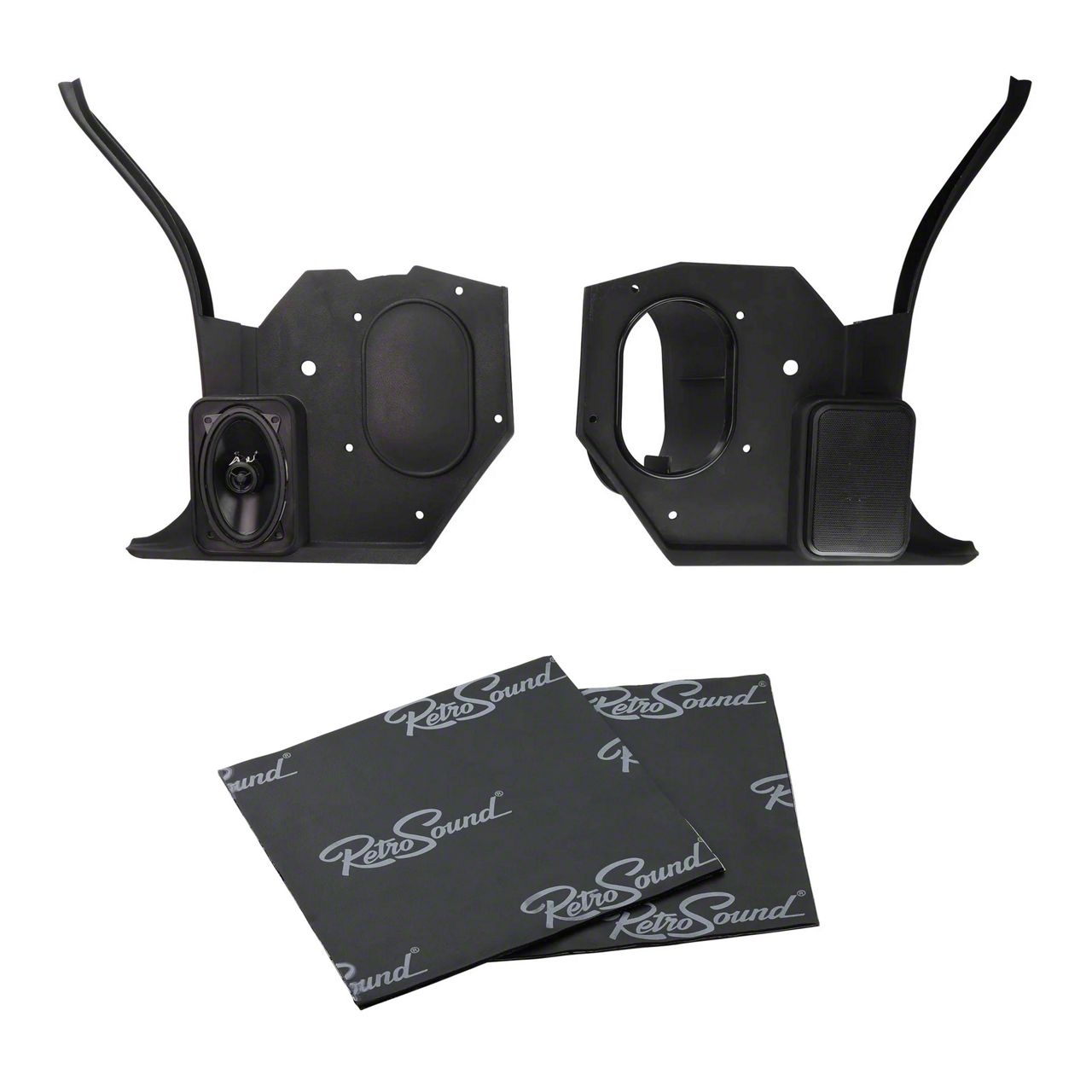 Direct Replacement Kick Panels. The RetroSound Kick Panels with Deluxe Speakers and Sound Dampening; Black upgrade your classic Camaro�s interior with custom-fit, high-quality speaker panels. Designed to mount easily and accommodate most 4x6-inch speakers, they improve sound quality and complement your vehicle's factory look while reducing unwanted noise.