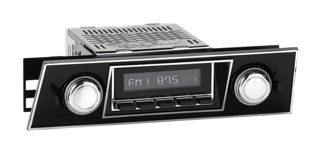 Classic Style Integration. The RetroSound RetroRadio Motor 4 Radio with Chrome Black Face, Chrome Bezel, and Chrome Metal Knobs offers a seamless blend of vintage appearance and modern functionality. Designed to replicate the original factory radio in 1967-68 Chevrolet Camaros, it allows classic car enthusiasts to enjoy contemporary audio features like Bluetooth streaming, SiriusXM capability, and USB playback without compromising the vehicle’s authentic interior look.
